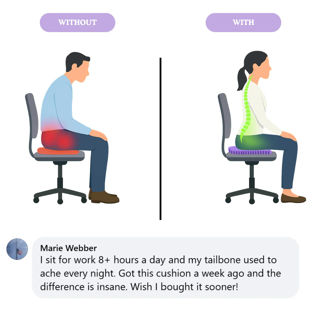 The Gel Cushion makes a noticeable reduction in back, hip, tailbone, and sciatica pain so you can focus on what actually matters.