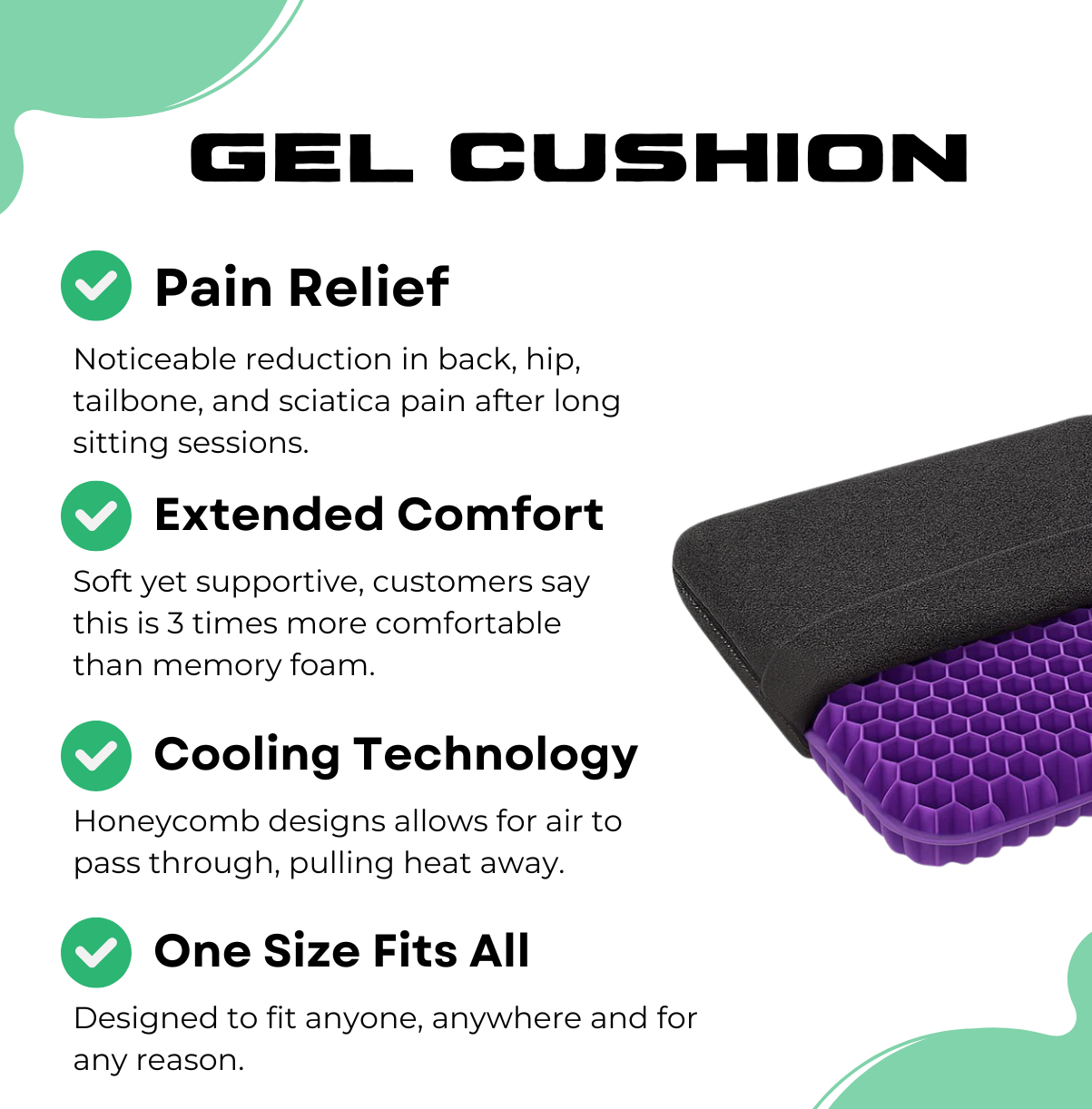This isn't just any seat cushion, this is The Gel Cushion. Designed for optimal lumbar support, comfort and cooling during long sitting sessions.