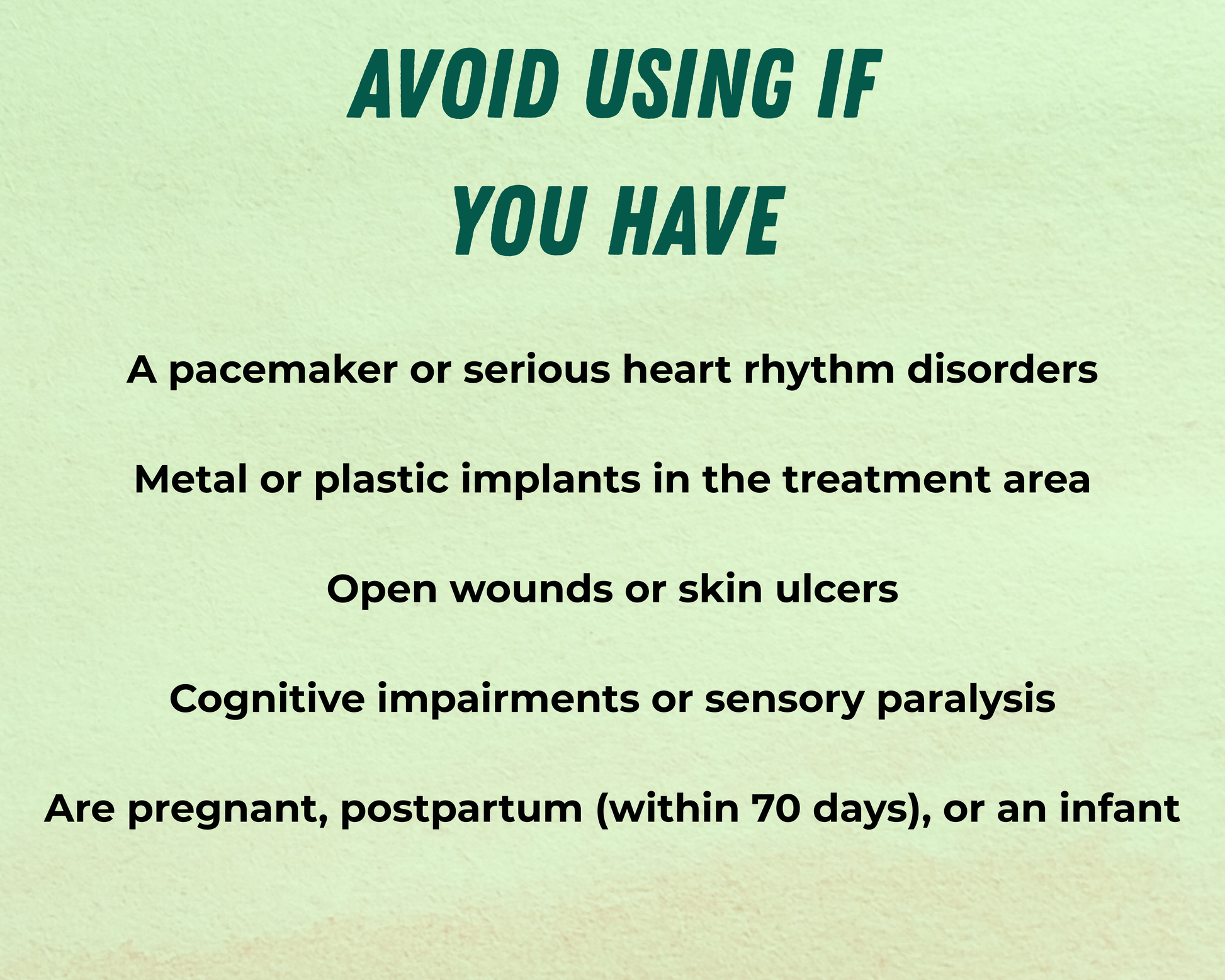 Avoid use on the heart, both sides of the neck, face, and throat.